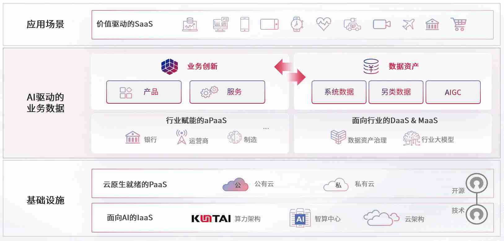 数字时代,,围绕企业数字化转型的关键要素,,PA直营数码开创性的提出数云融合战略和技术体系框架,,,,着力在云原生、、、数字原生、、AI原生和信创产业上架构产品和服务能力,,为处在不同数字化转型阶段的快消零售、、汽车、、金融、、医疗、、、政企、、、、教育、、、运营商等行业客户提供泛在的敏捷IT能力和融合的数据驱动能力,,构建跨界融合创新的数字业务场景和新业务模式,,助力企业级客户建立面向未来的核心能力和竞争优势,,,,全面推动社会的数字化、、、智能化转型升级。。。